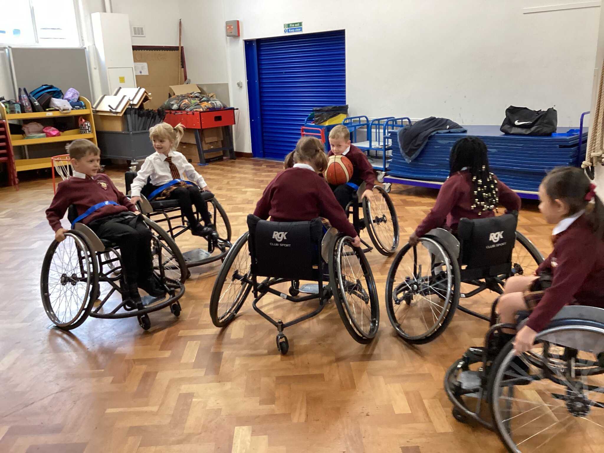 On Wednesday, Year 1 enjoyed playing wheelchair basketball. They were all able to move themselves around the court and used excellent team work.