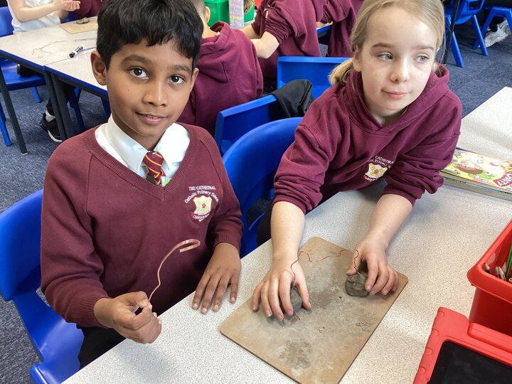 Today, we started to make our buzz wire games. We used clay for the base then children enjoyed creating their buzz wire design to challenge their friends. Next lesson, we will add the electrical circuits.