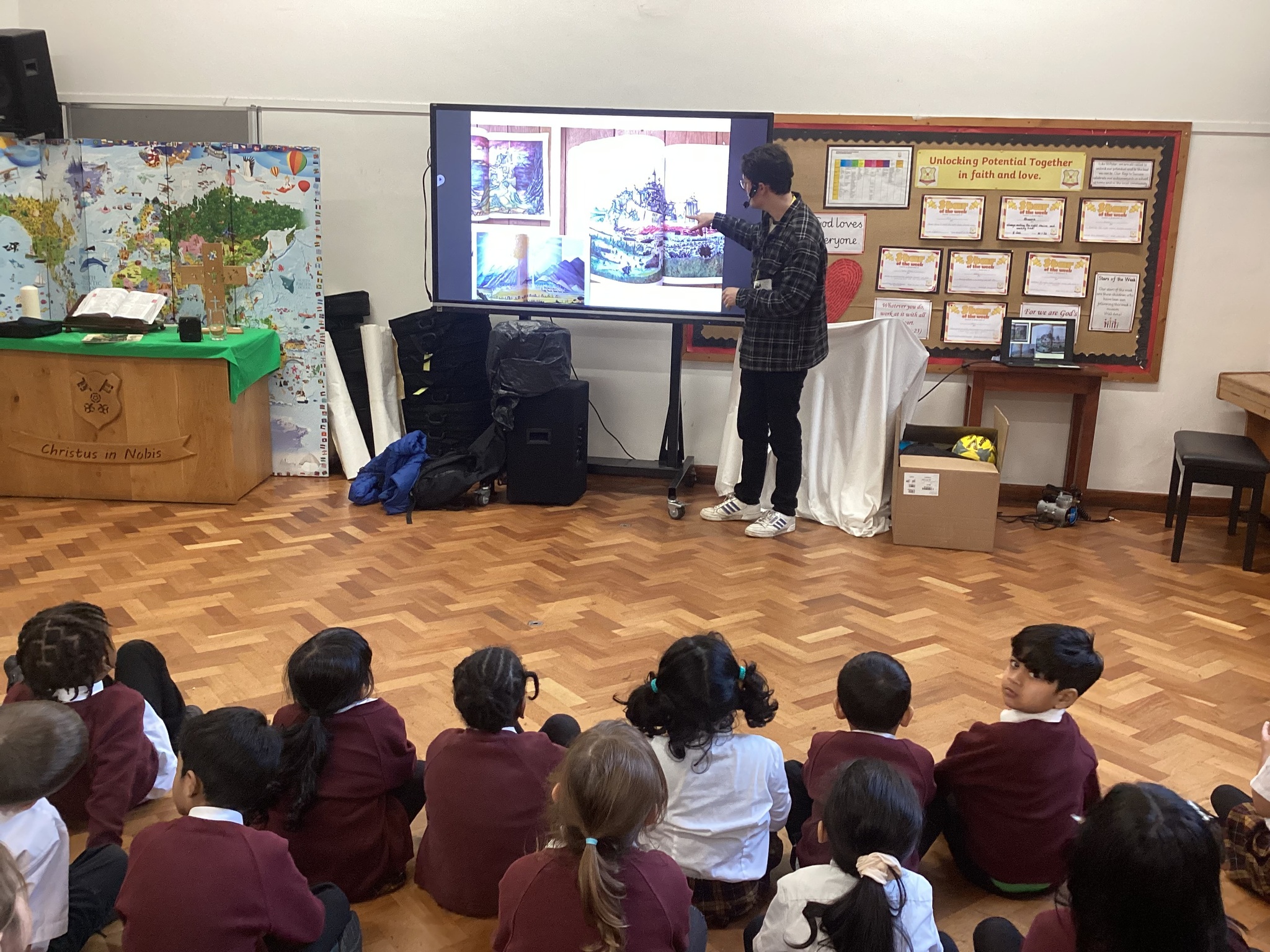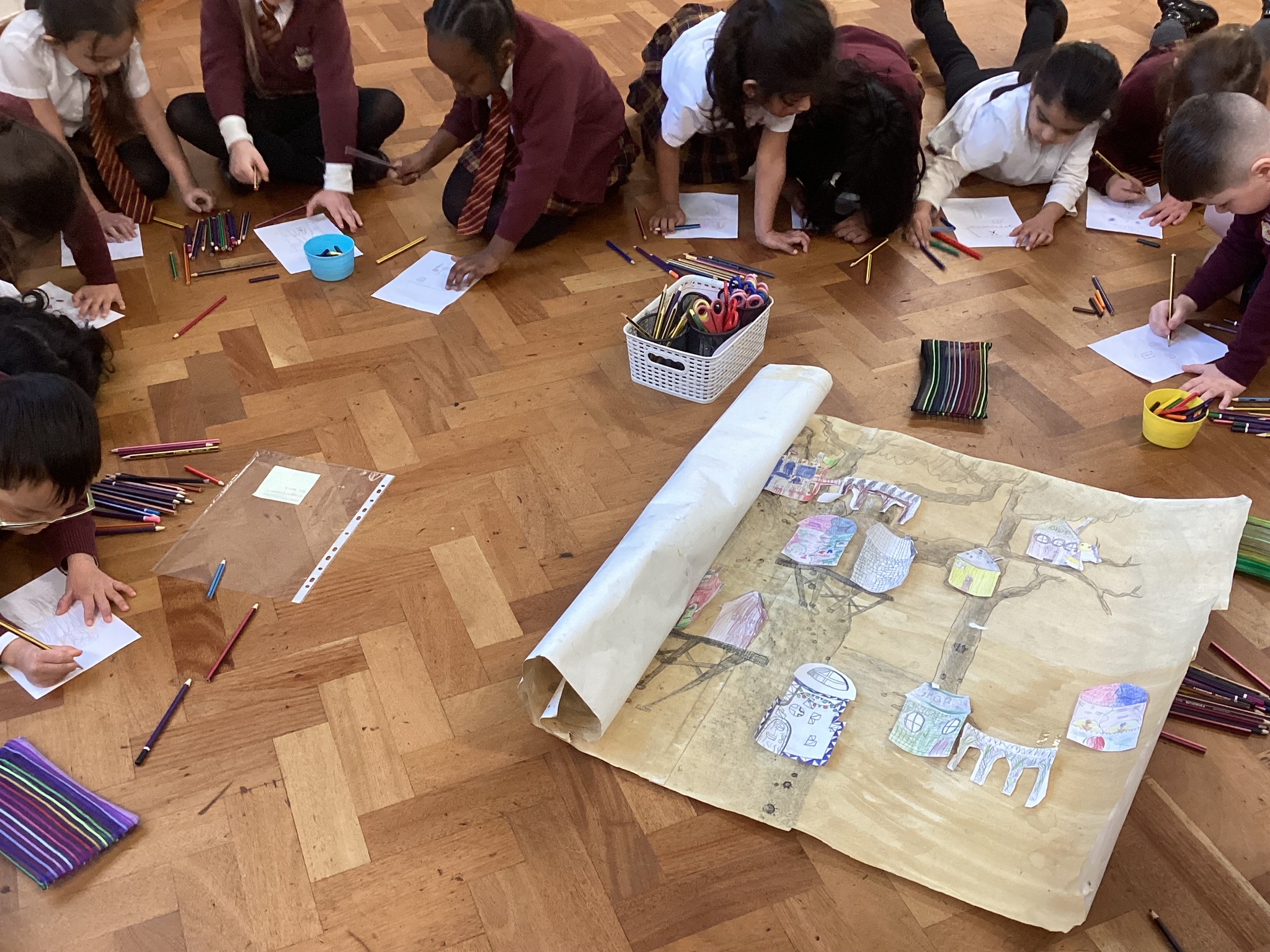 Today, we had a very exciting visitor in school. The author Sean Perkins came to visit the school. This morning, Sean read the school one of his amazing stories and this afternoon Year 1 and Year 2 took part in an imagination workshop. They all designed a tree house for a character to live in.