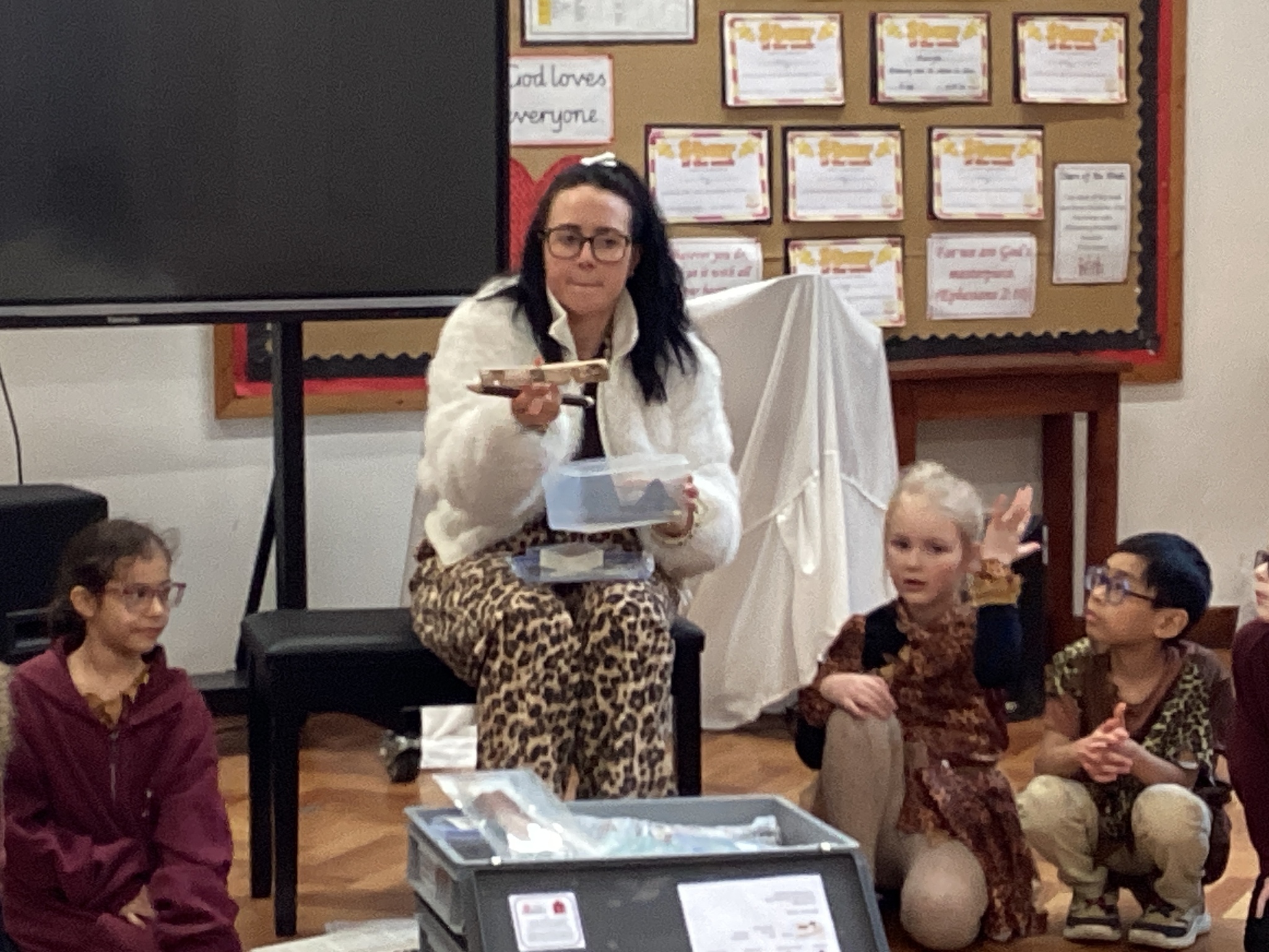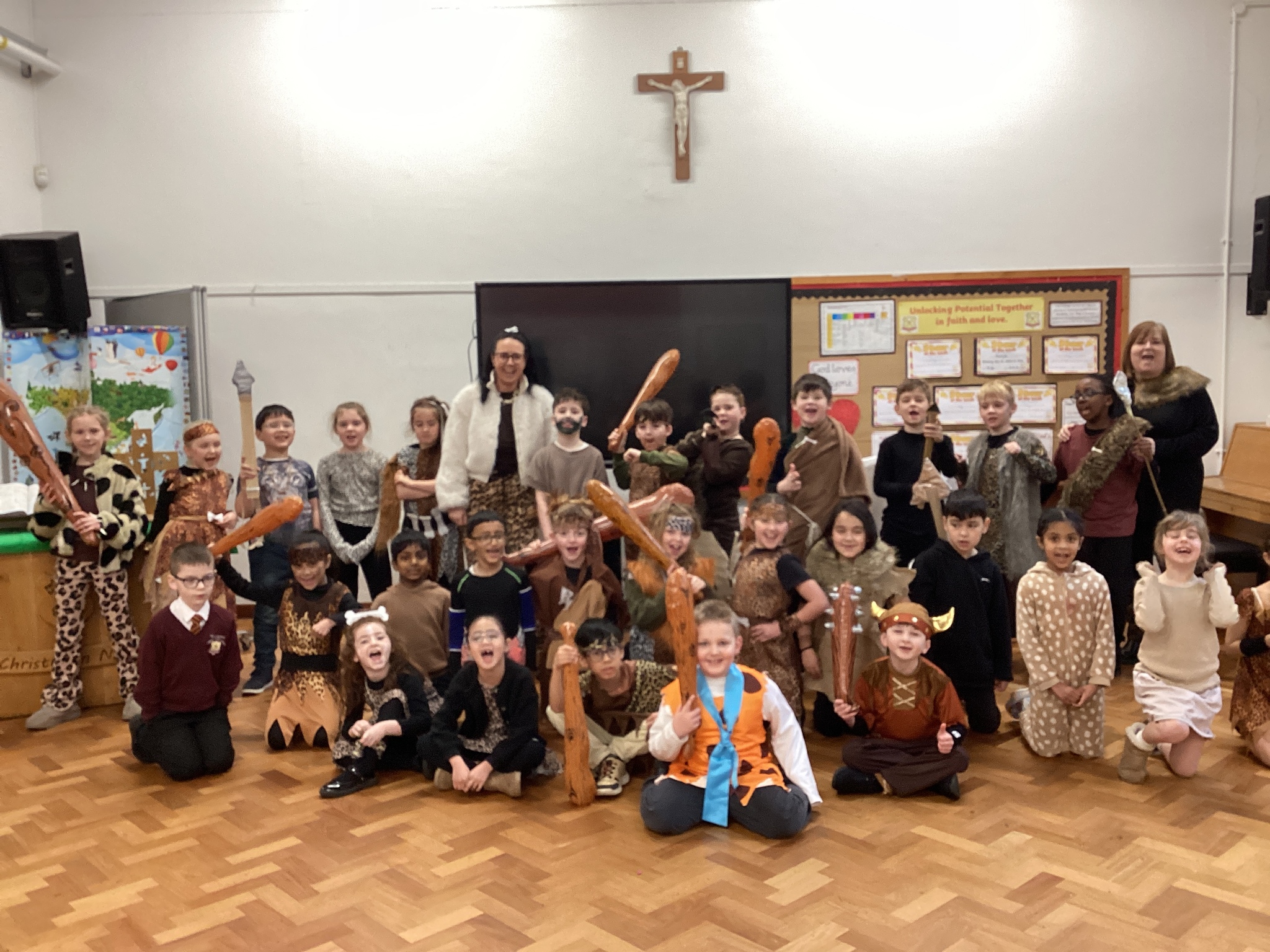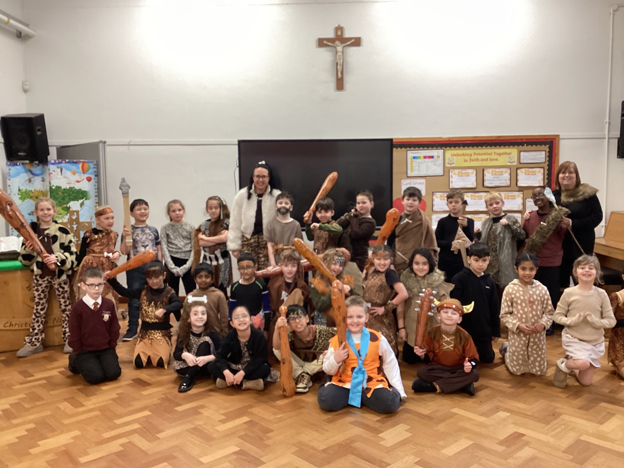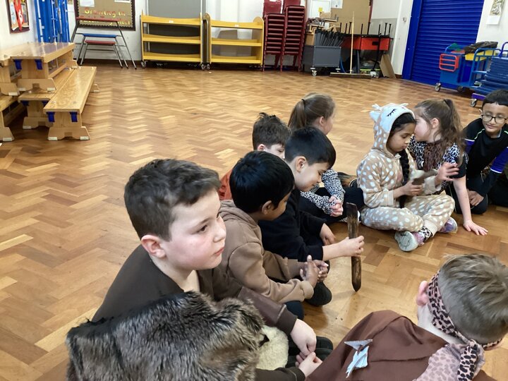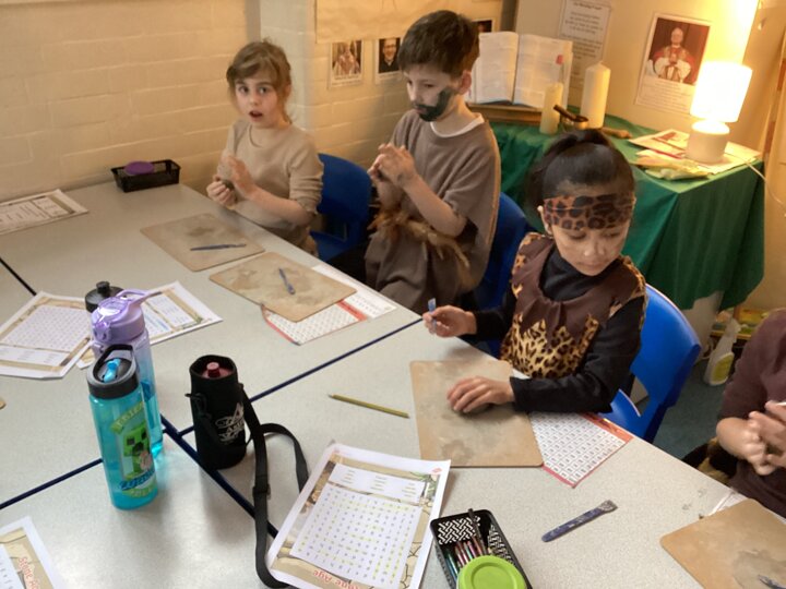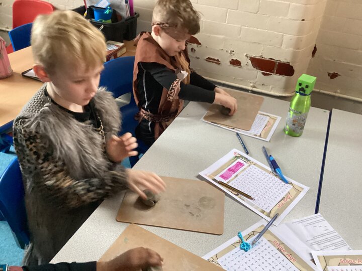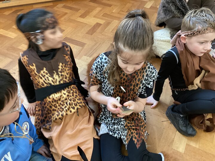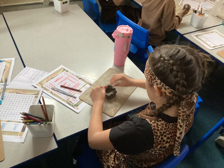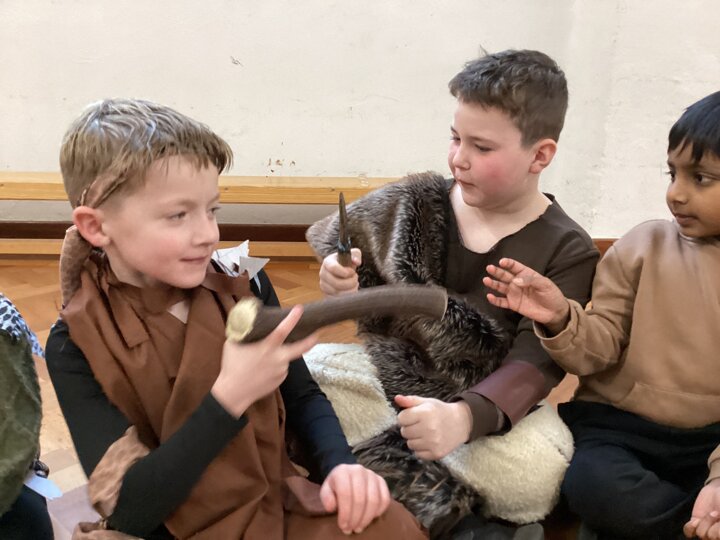 Year 3 have had such a fun today, We enjoyed some crafts this morning - we did some cave painting under the table and we made some clay pots. Then this afternoon we enjoyed watching some of Stig of the Dump and looking at some Stone Age artefacts that we lent from the Library! We’ve had a great day and all our costumes looked fantastic.
