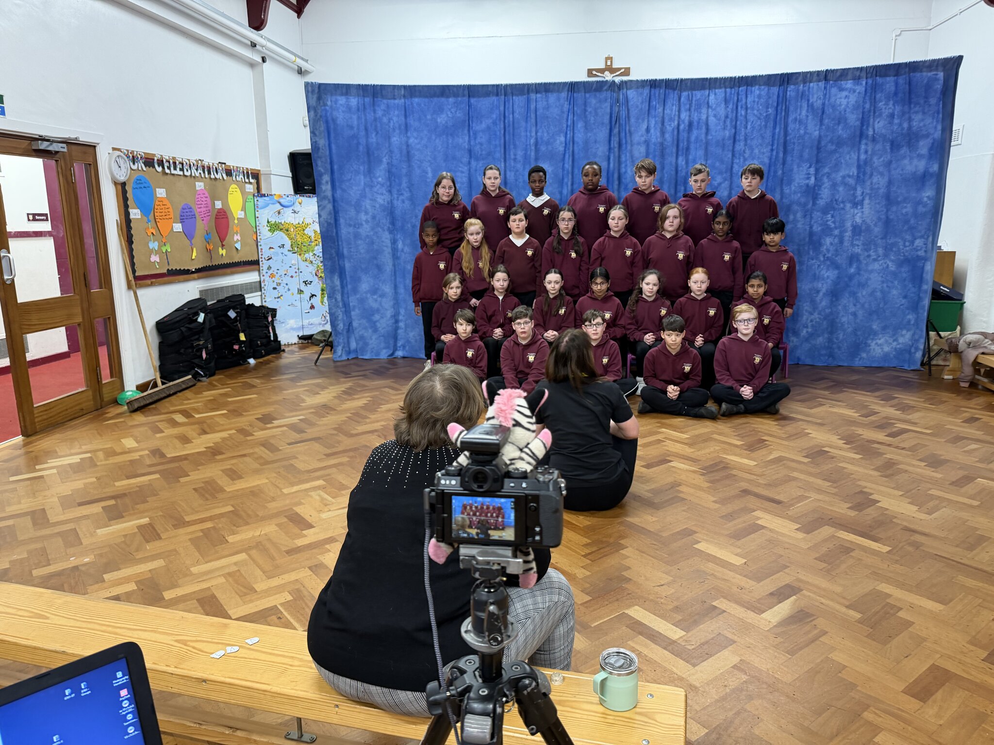 Here are Year 6 having their last class school photo taken in primary school!
