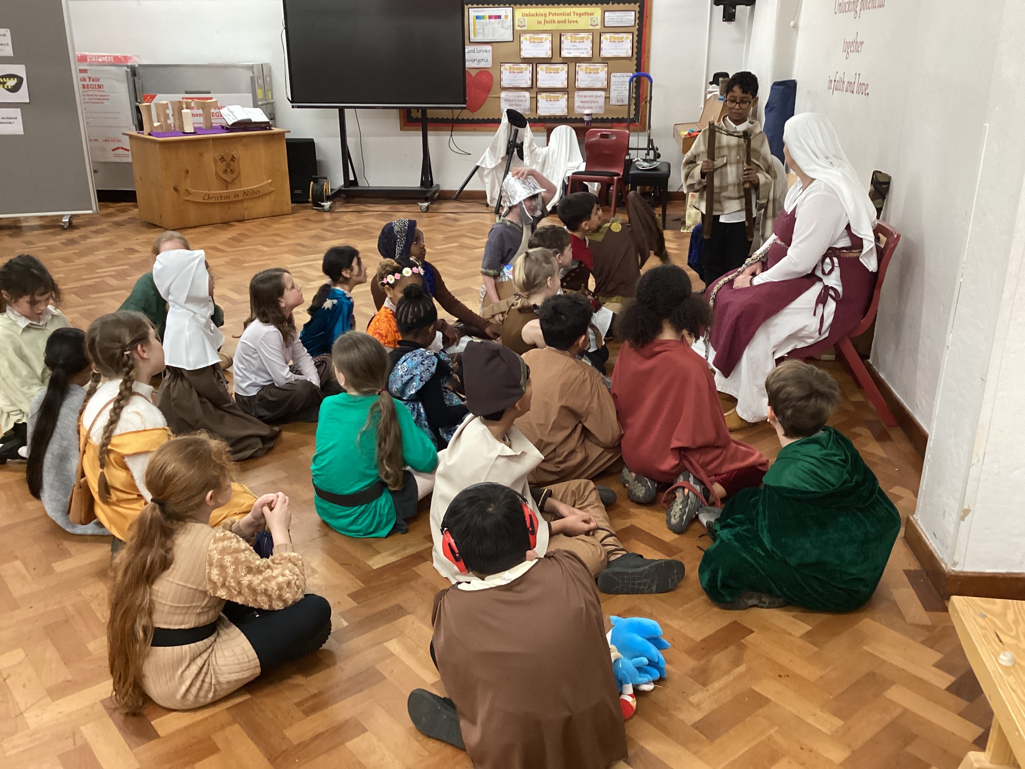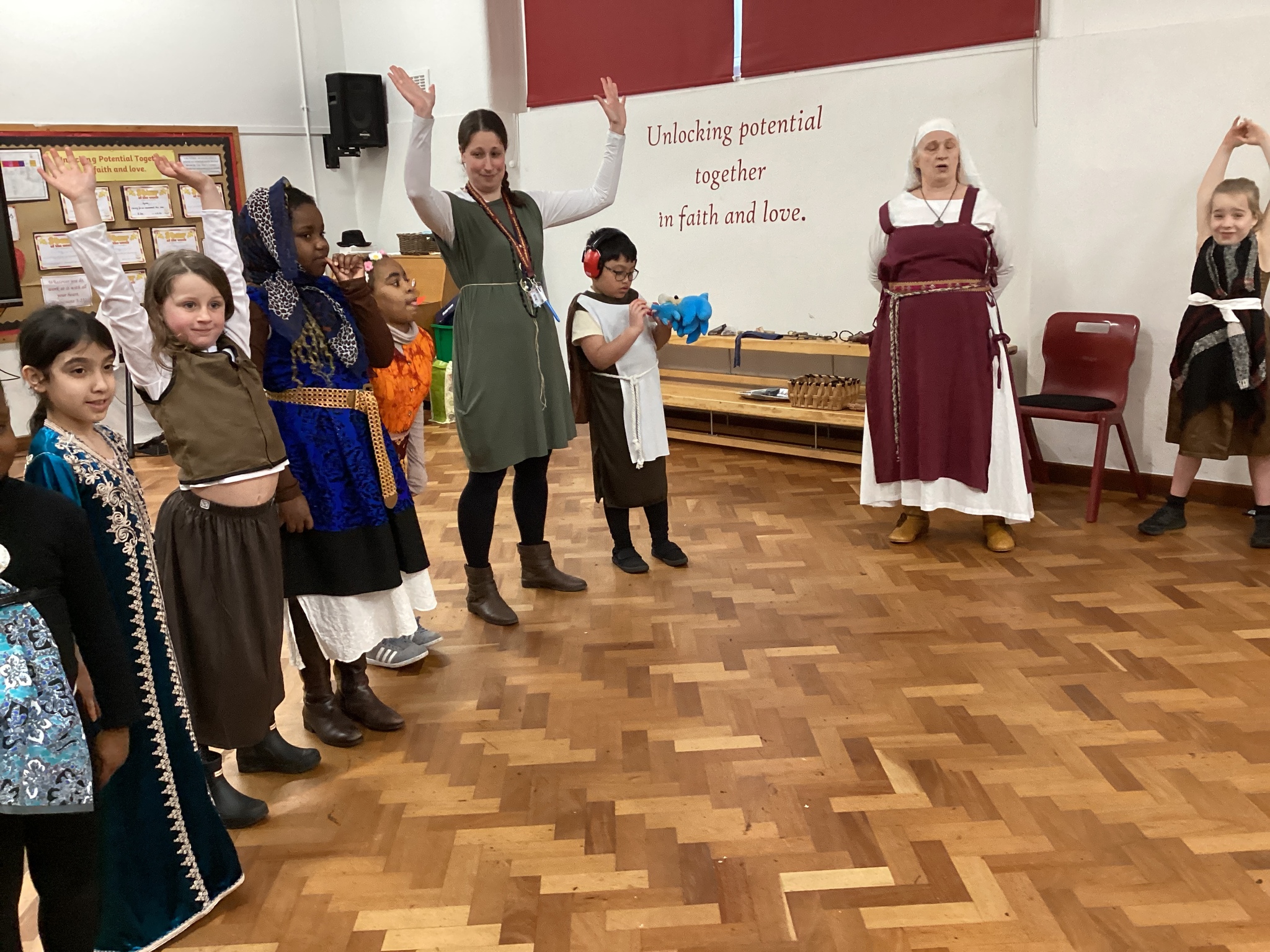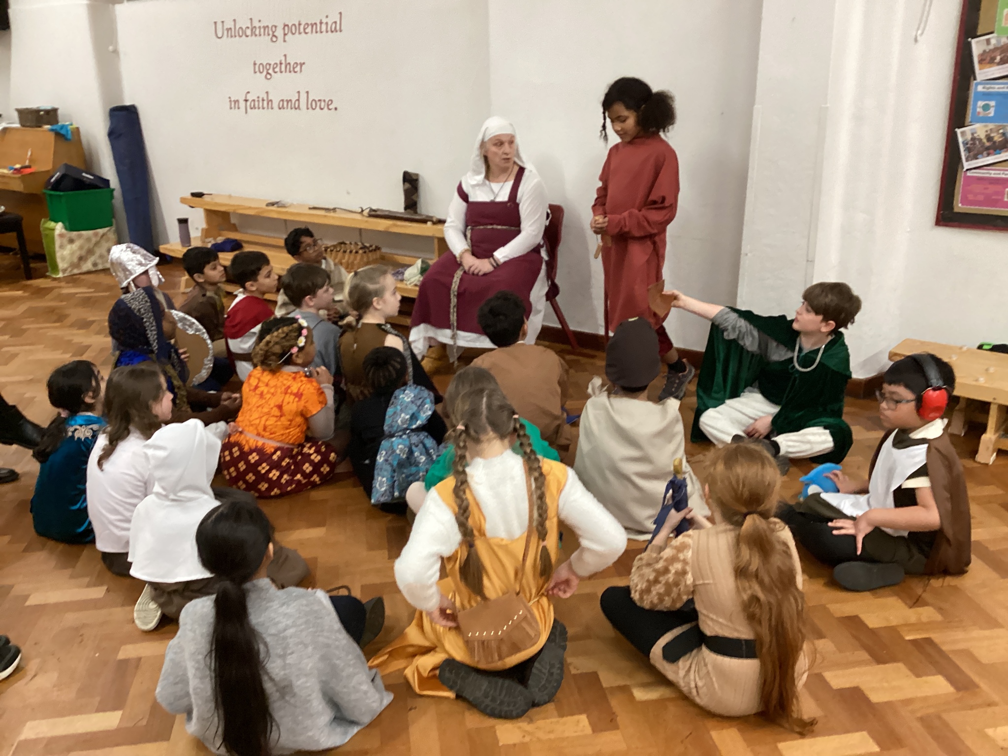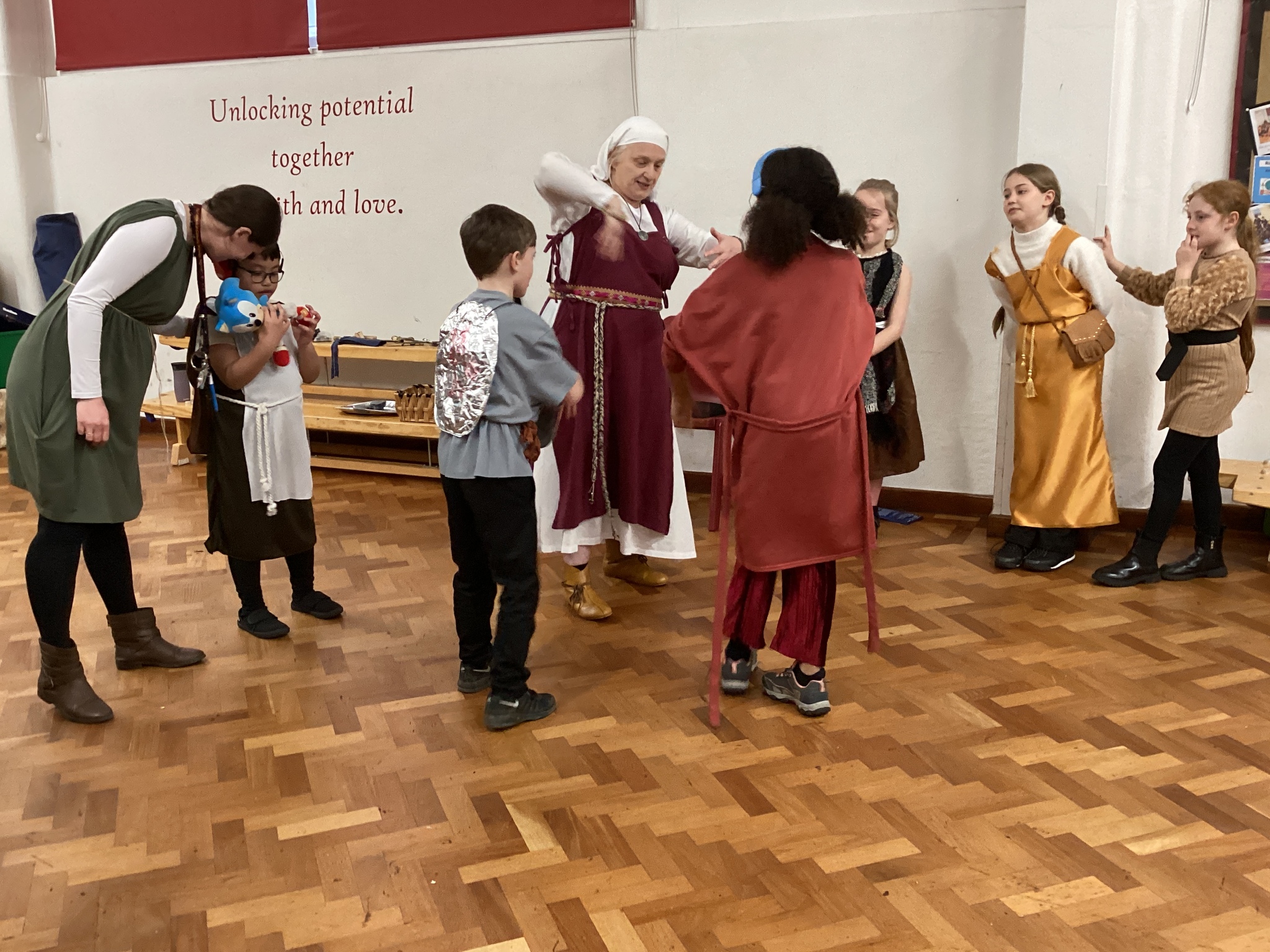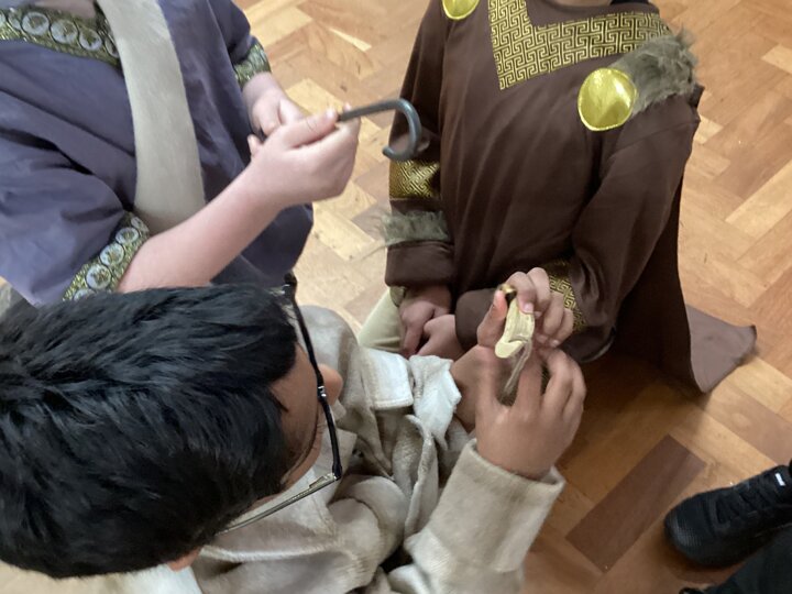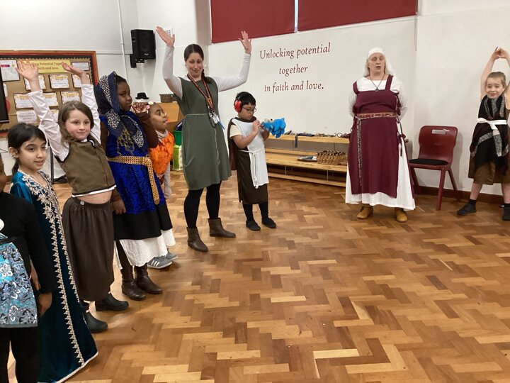 Well done to our Year 4 children who dressed up as Anglo-Saxons today - what amazing costumes! Thank you to parents for your support and help in this. We had a wonderful afternoon in our Anglo-Saxon workshop. Meredith (an Anglo-Saxon) came into school and told us stories from Anglo-Saxon times and we had the opportunity to study some artefacts, learn about Anglo-Saxon houses and find out about how the Anglo-Saxons defended themselves. It was great to see everyone interacting and learning together. Well done, Year 4!
