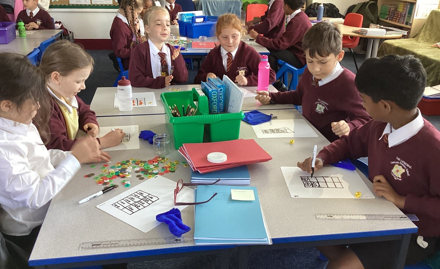 Our first learning about place value in Year 4 involved playing games in pairs to exchange hundreds and thousands.