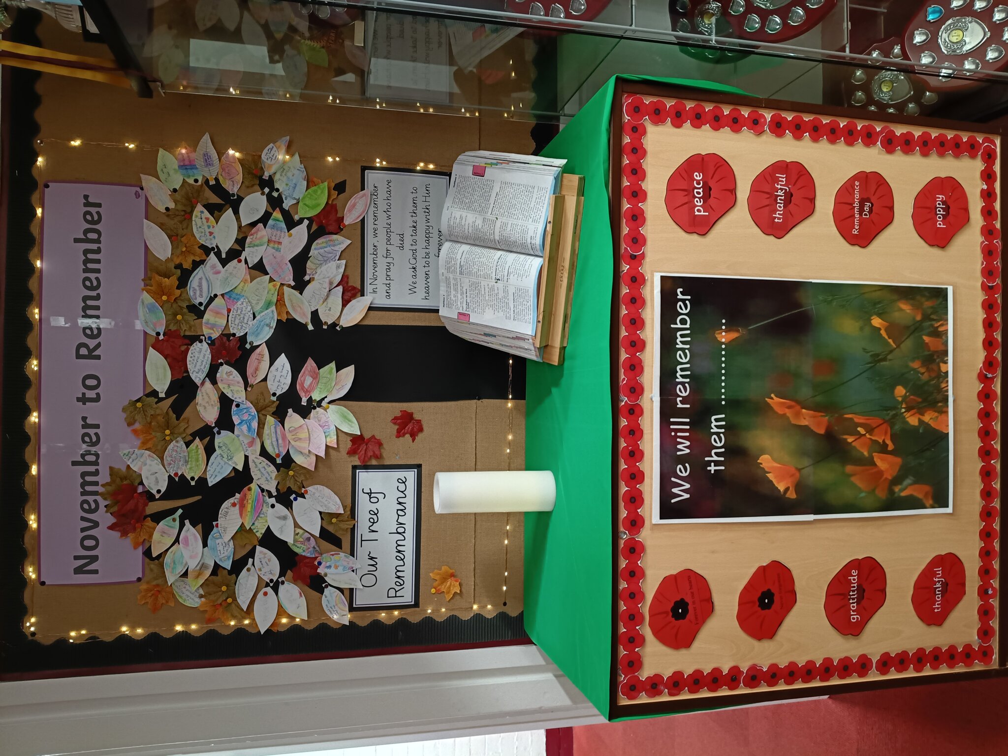 During November, we especially remember and pray for those who have died. The children have written the names of loved ones who have died on leaves on our Tree of Remembrance. We pray for them with the following prayer: