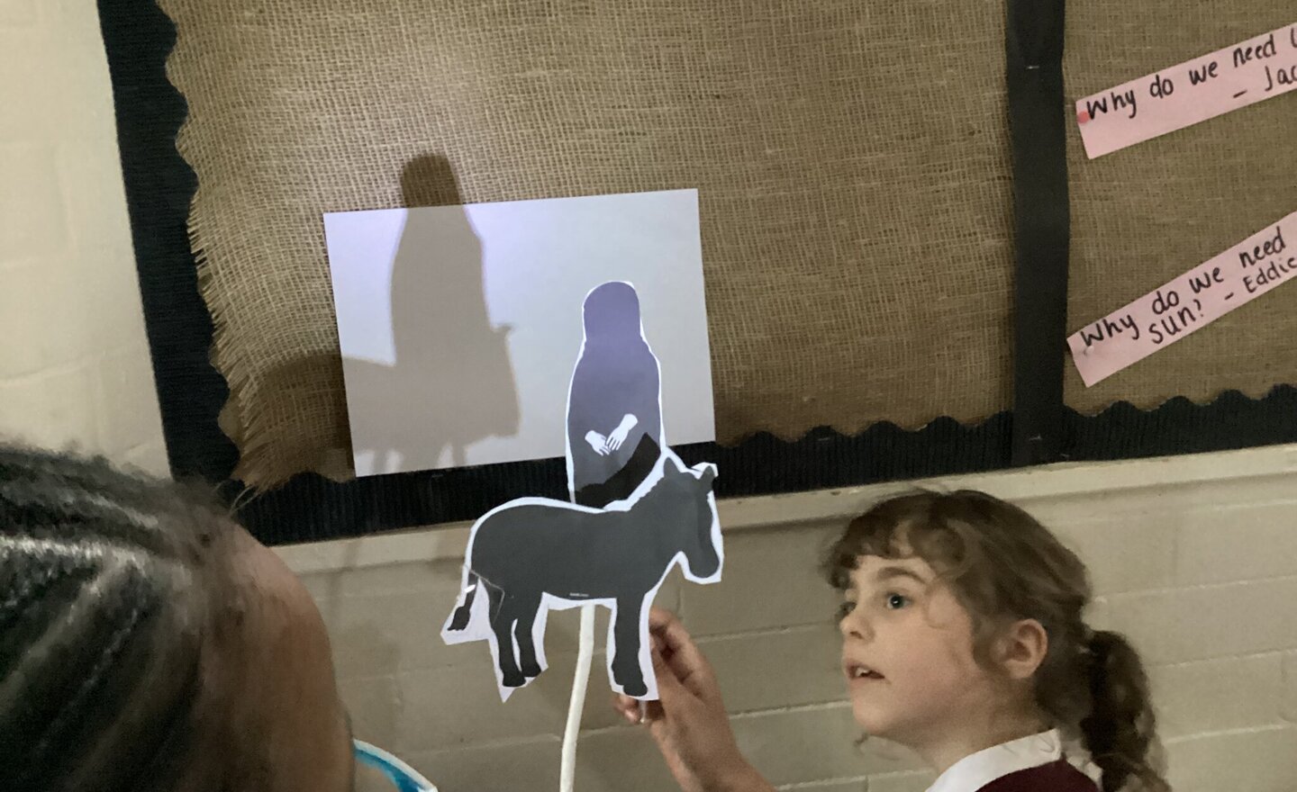 As we have been learning about light and shadows in our science, we had a go at retelling the nativity story using shadow puppets. We worked in groups to put together a performance and then we took it in turns to listen to each other.