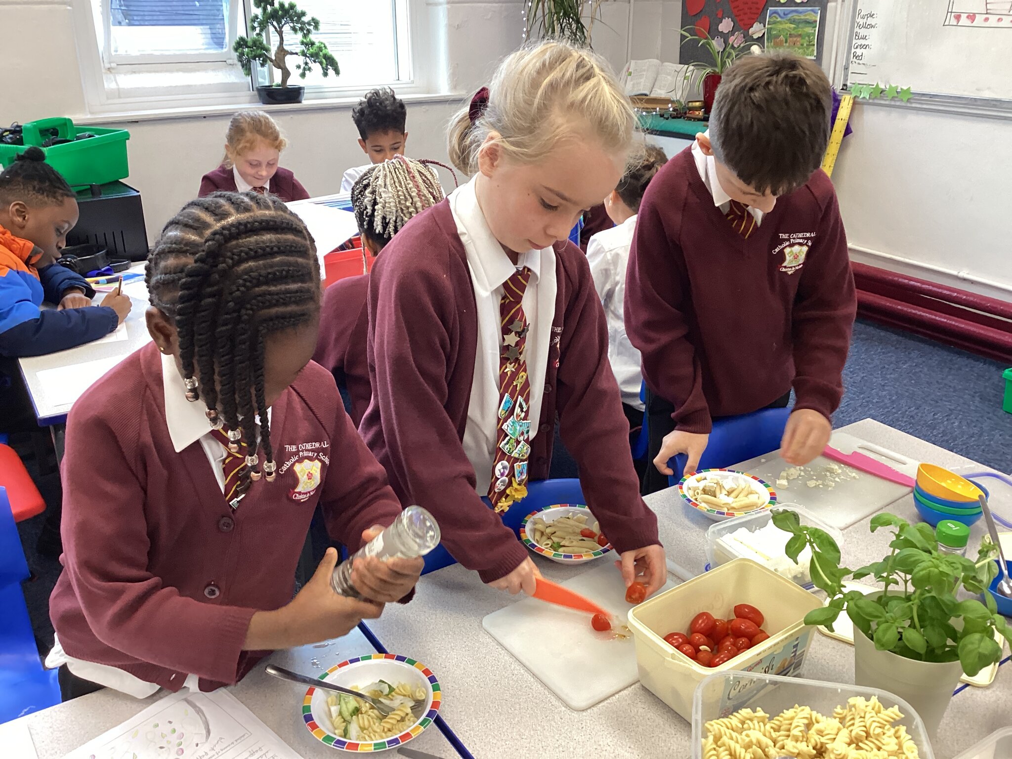 Following food tasting a couple of weeks ago, children in Year 4 planned to make their own pasta salad to create a healthy accompaniment to a meal. The children prepared their pasta salads today and they looked delicious. Great care was taken with chopping onions, tomatoes, cucumber and peppers and attention was given to appearance as well as taste. Well done, Year 4!