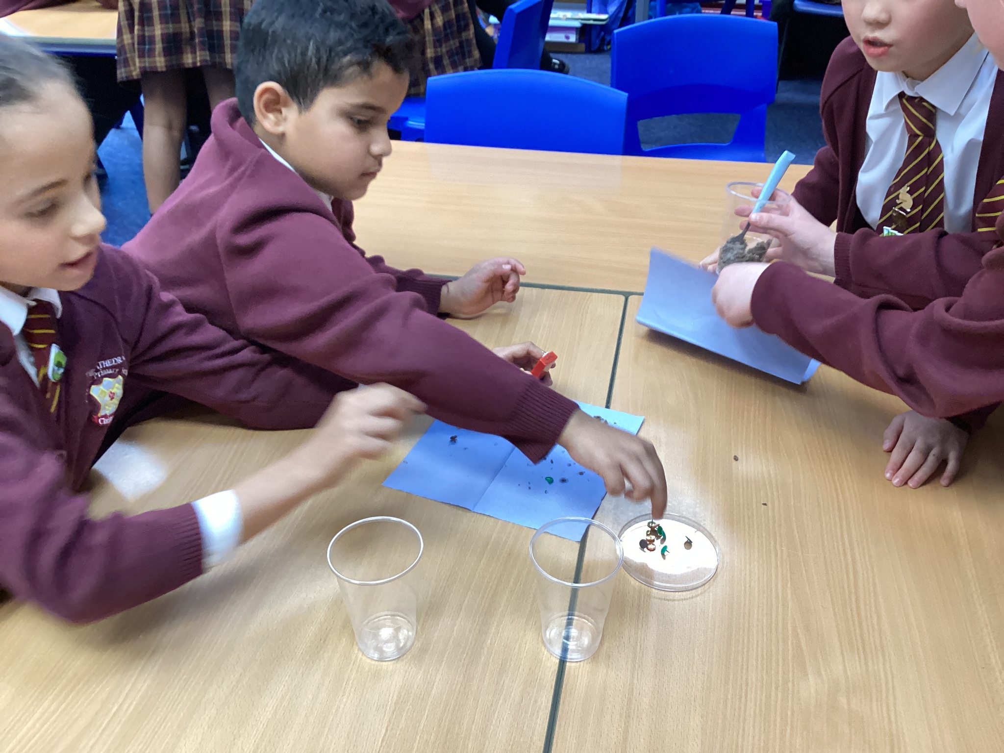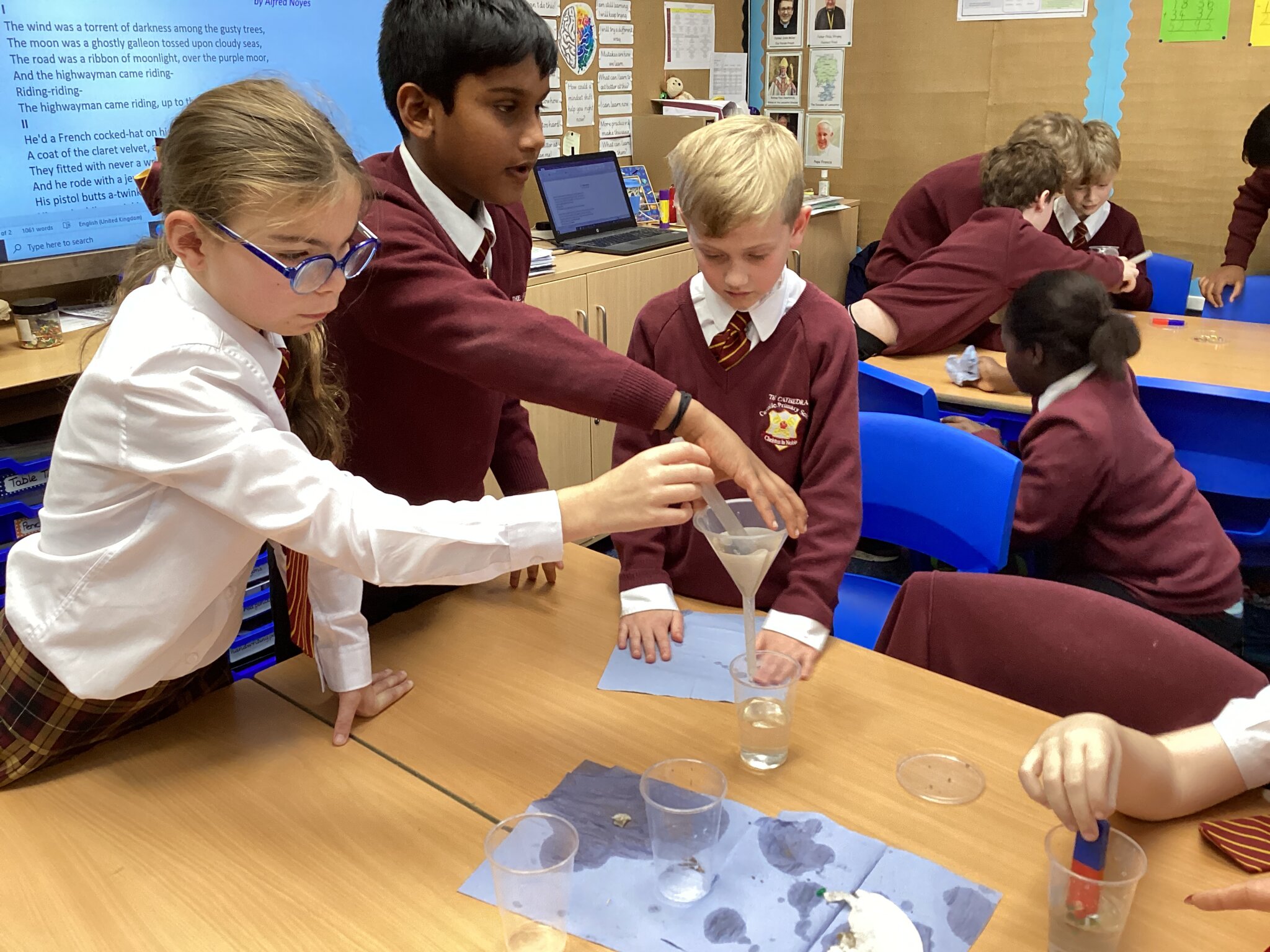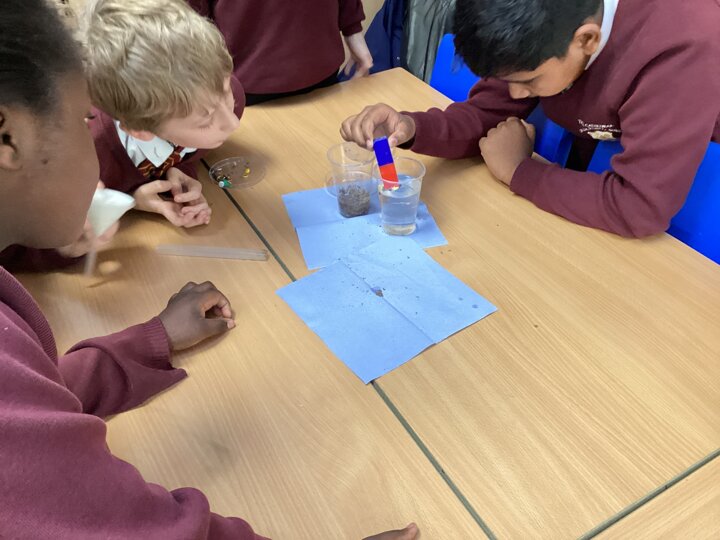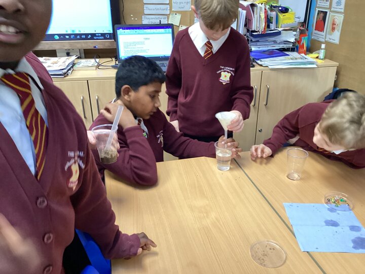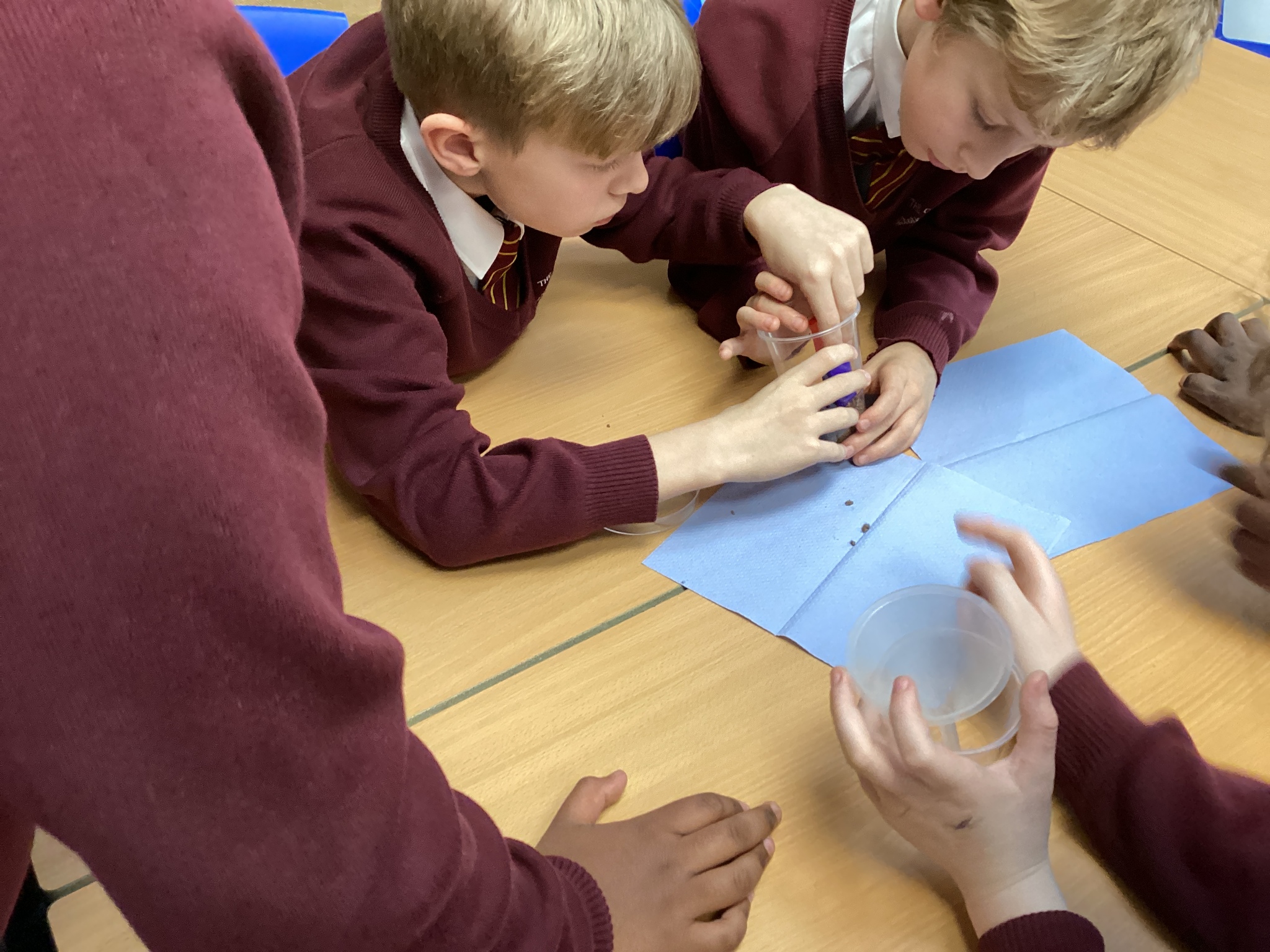 Year 5 have been learning about properties of materials. We had to separate a mixture of sand, salt and drawing pins without putting our fingers in the mixture. We really had to think hard about how to do it and used a variety of methods. We used a magnet to remove the drawing pins, then added water to dissolve the salt and filtered the remaining mixture. We discovered that dissolving salt is a reversible change.