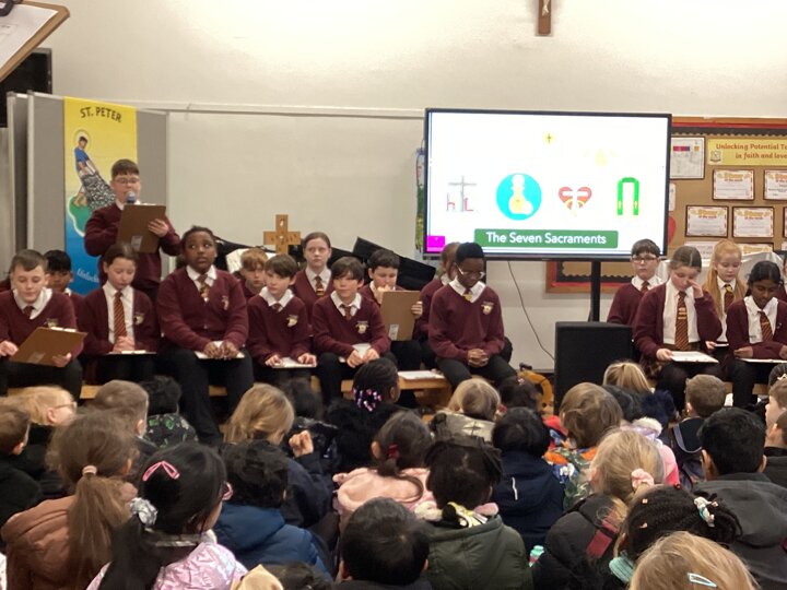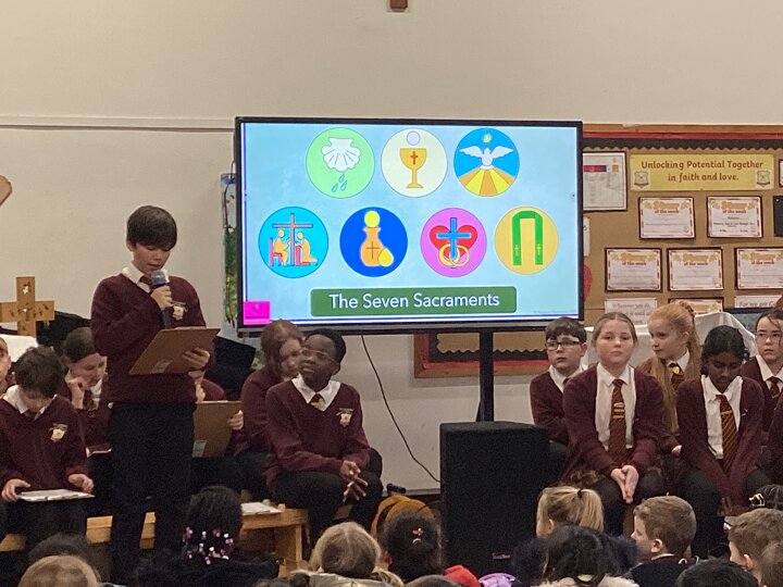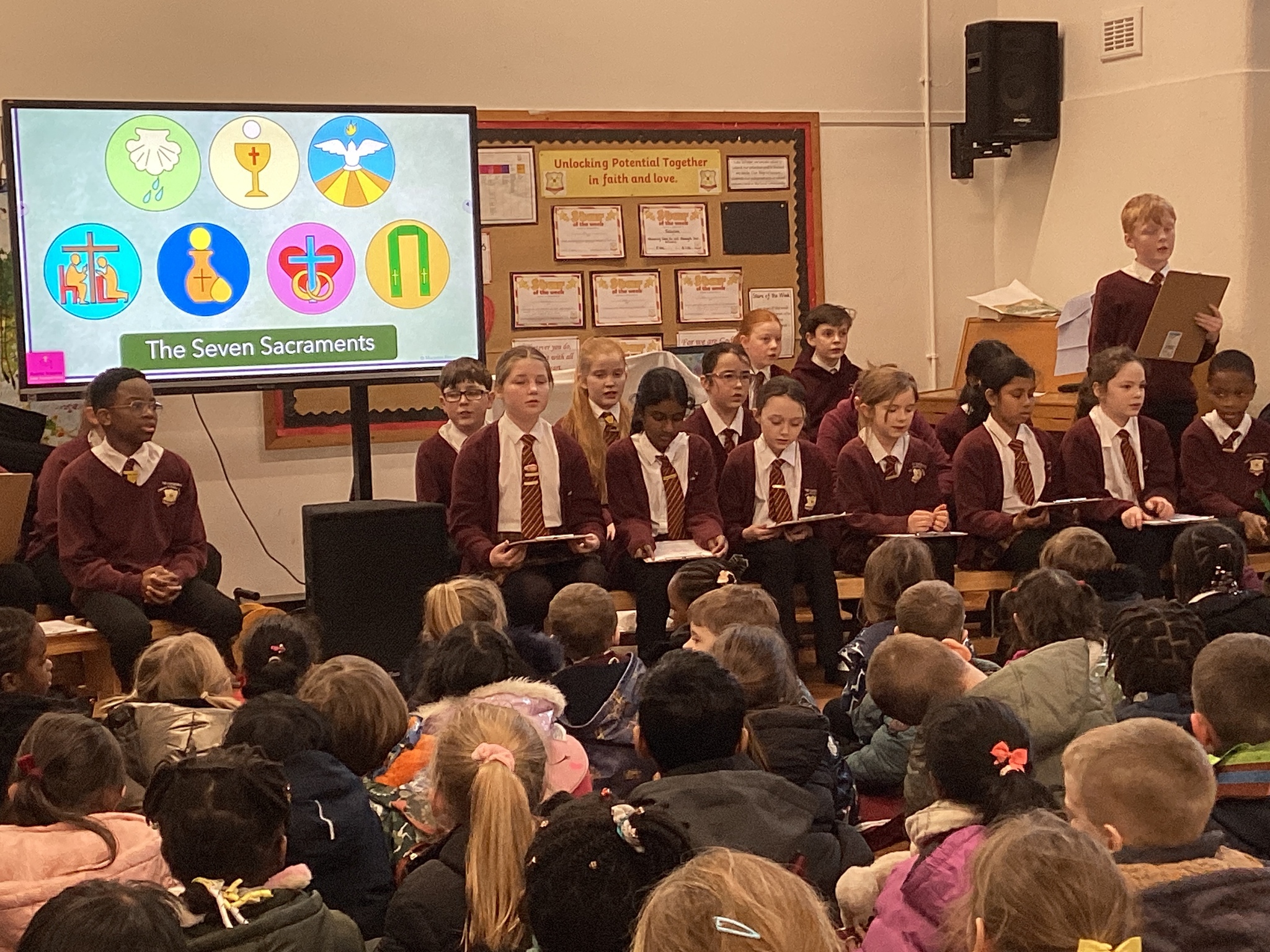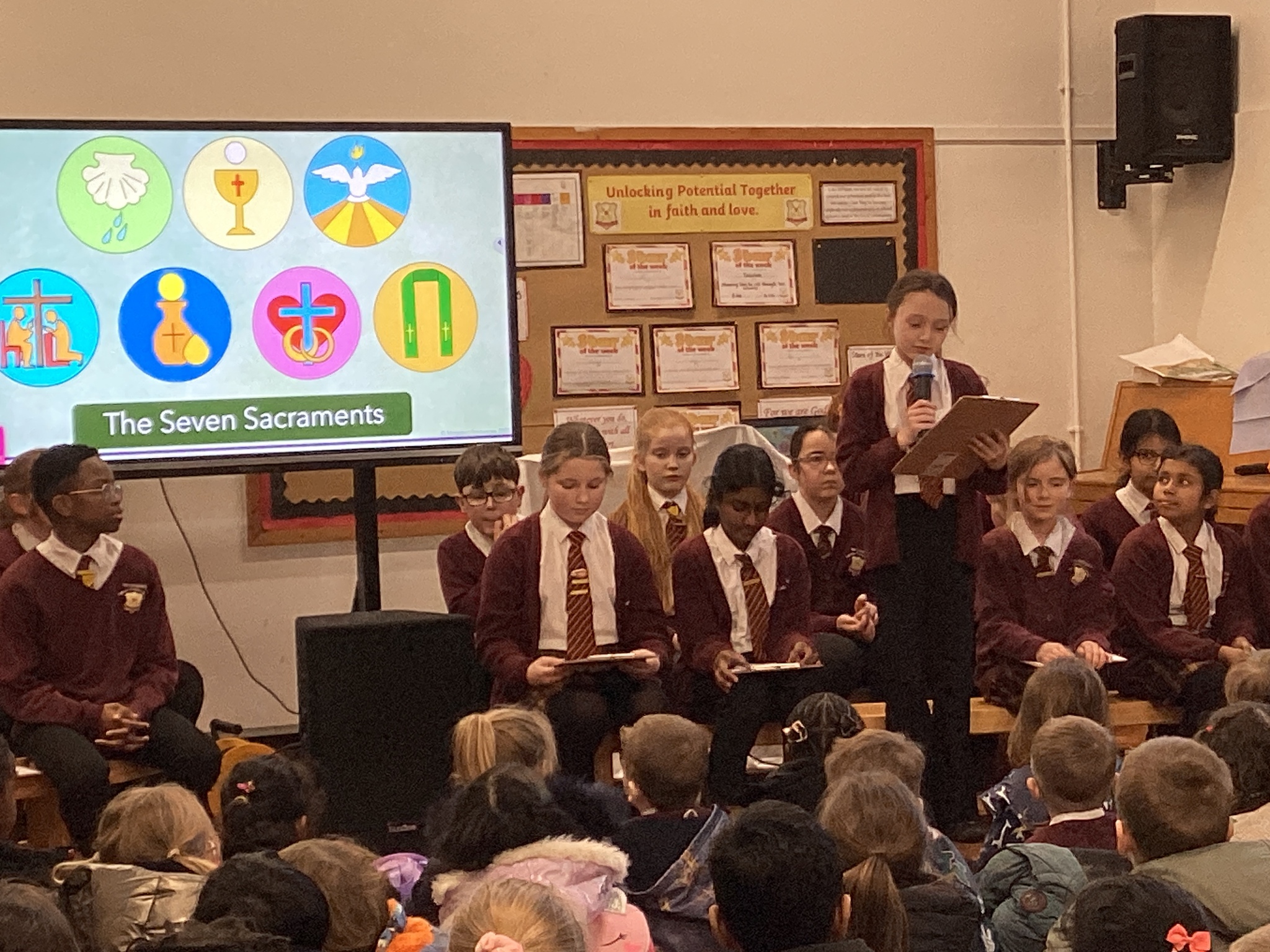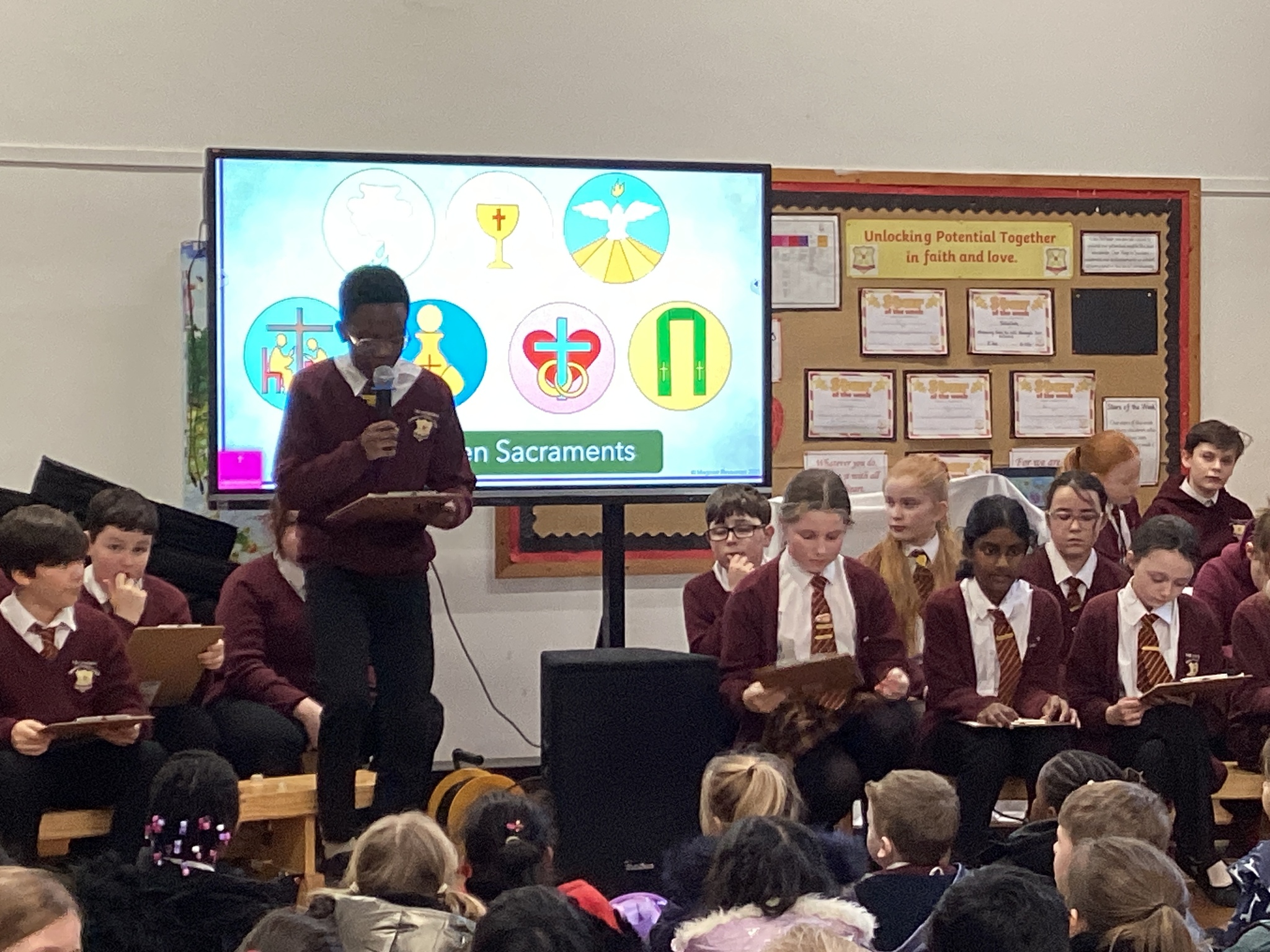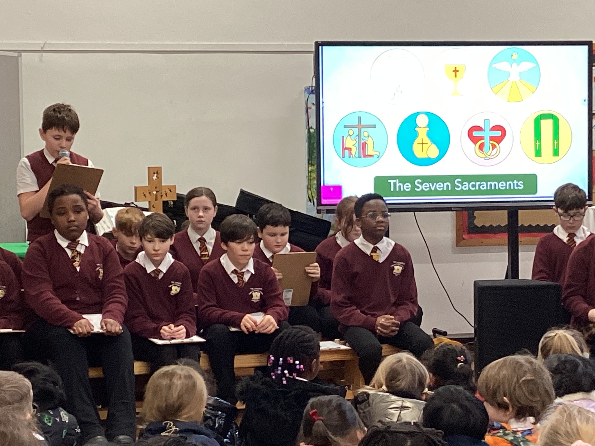 Year 6 were really impressive this afternoon as the delivered their Celebration of the Word. They wrote and based their liturgy on the Seven Sacraments - describing them for the rest of the school.