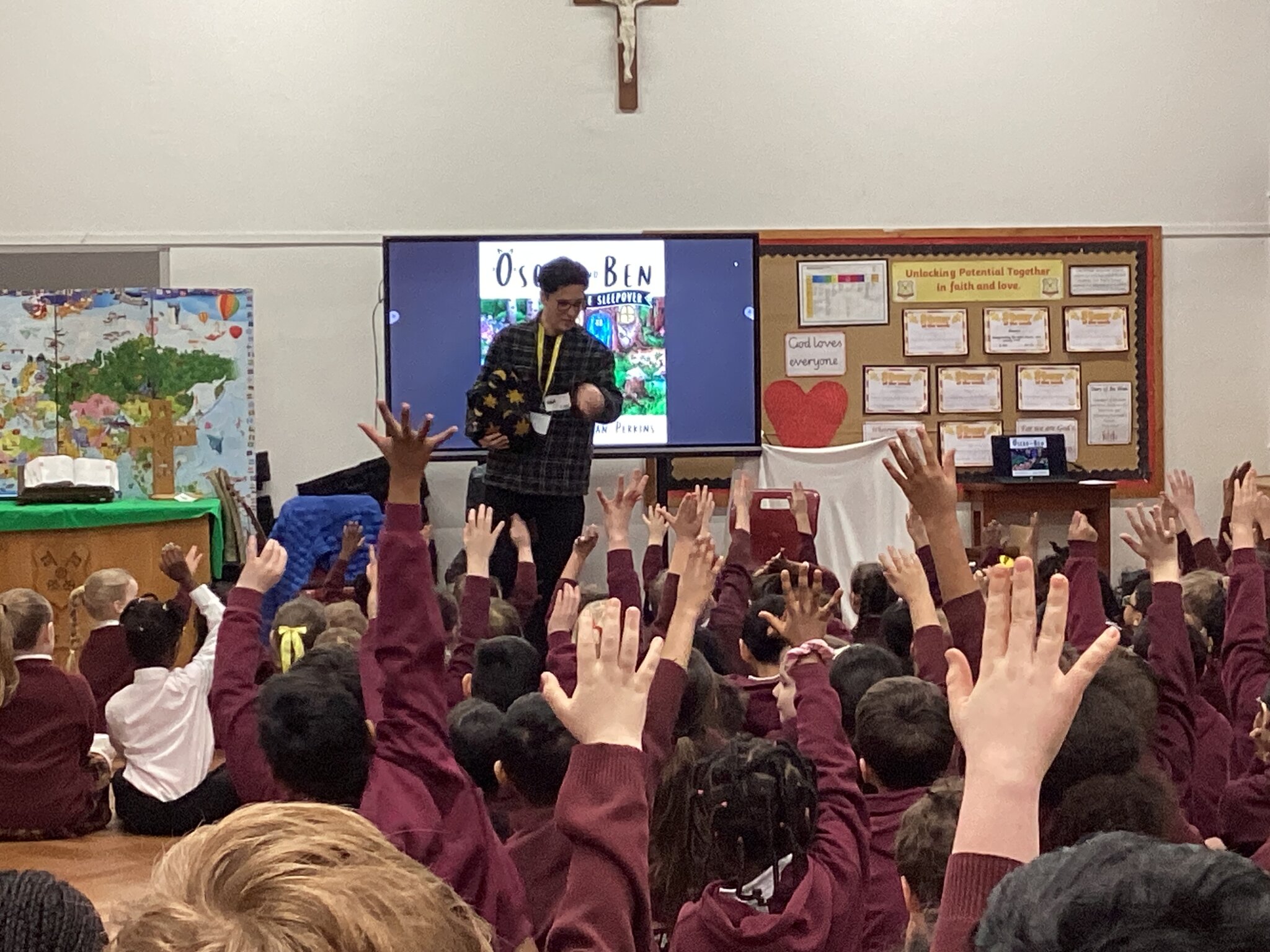 As part of the National Year of reading, we had a visit from author Sean Perkins. We started the day with an assembly with a retelling of Sean's new book. Sean visited each class and lead workshops. Reception children took part in the Silly Pie rhyming workshop. Key Stage 1 created their own settings in Kids Kingdom and Key Stage 2 created some characters in Pencil Case Personification. We all had a fun day and we are grateful for Sean's visit.